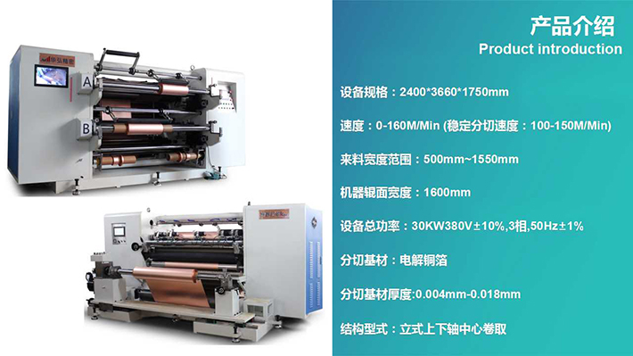 - 工作速度:0-160M/Min (稳定分切速度:100-150M/Min)